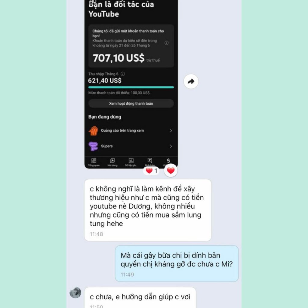 Bạn mình thì nhanh hơn – sau 1 tháng đã có hơn 2.700$ thu nhập từ affiliate + YouTube. Có người đạt mốc 500$/tháng với kênh chỉ 1.700 sub, và đang hướng đến 3.000$/tháng khi đạt 5.000 sub.