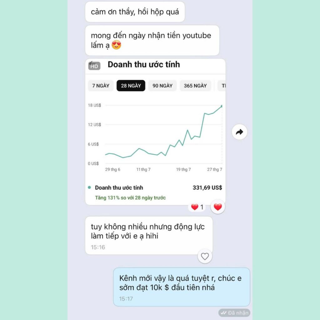 Ban đầu, mình biết tới khóa học này nhờ một người bạn giới thiệu. Bạn mình học trước và khoe rằng chỉ sau hơn 1 tháng, đã có video lên 10.000 view, RPM cao nên kiếm được hơn 2.000$/tháng. Mình tò mò nên tìm hiểu thử.